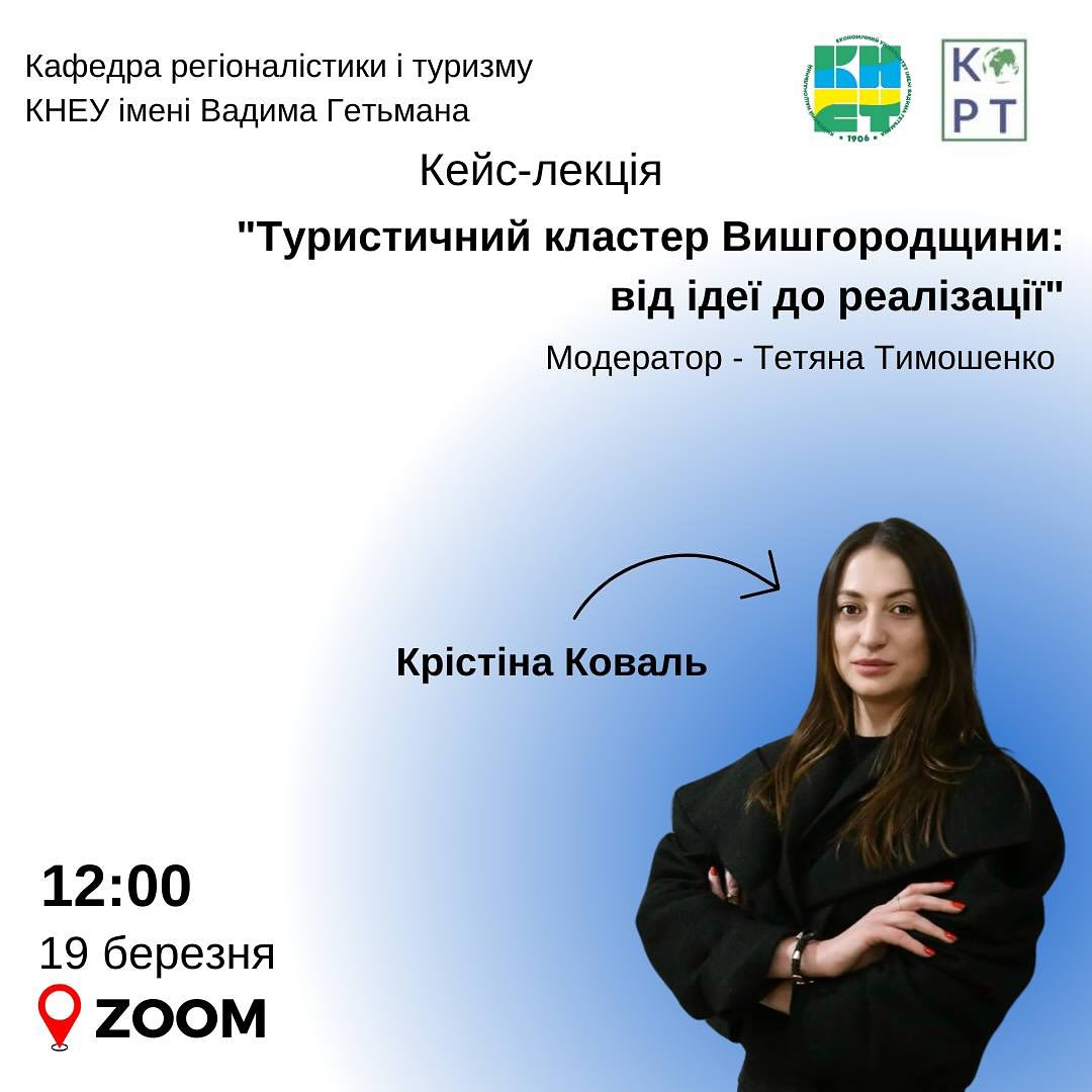 - Відкрита кейс-лекція на тему: Туристичний кластер Вишгородщини: від ідеї до реалізації. Сікерка Крістіна Коваль