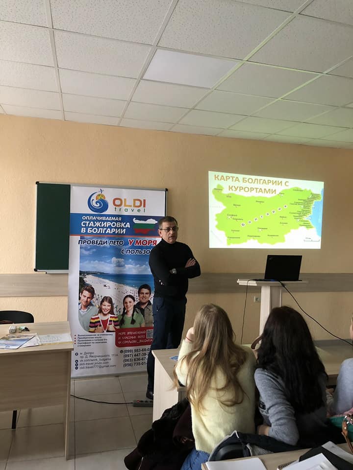 Генеральний директор туристичної компанії "Tural" та засновник міжнародного дитячого фестивалю "Slavic wreath" Гешо Любенов презентував для студентів спеціальності "Туризм" можливості щодо літнього стажування у Болгарії.